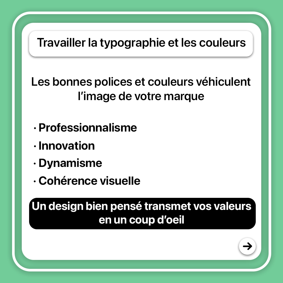La police de caractère et la palette de couleurs sont essentielles. Elles véhiculent des émotions et des valeurs : professionnalisme, innovation, dynamisme… Chaque choix est réfléchi.