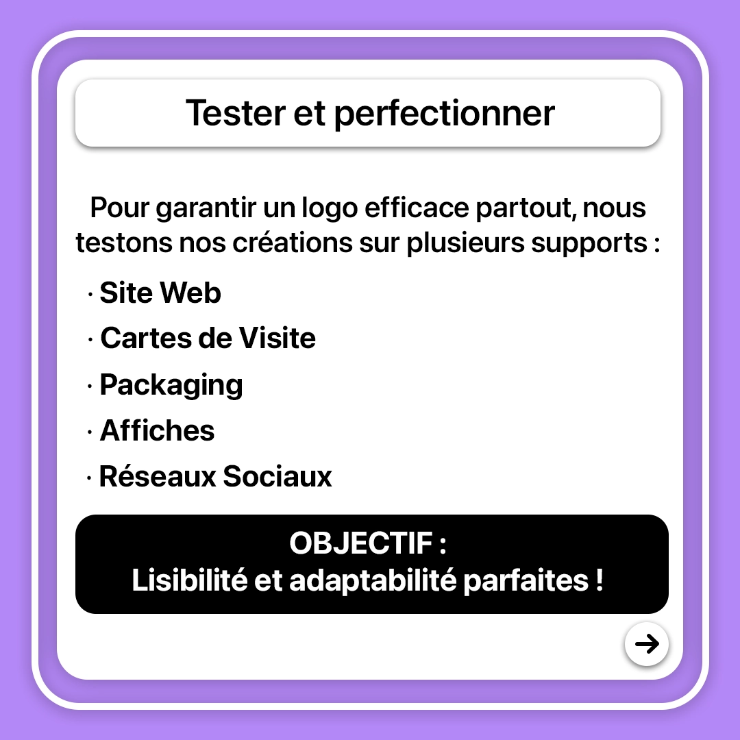 Un bon logo doit être efficace partout : sur un site web, une carte de visite, un packaging… Nous testons nos créations sur plusieurs supports pour garantir une lisibilité et une adaptabilité parfaites.