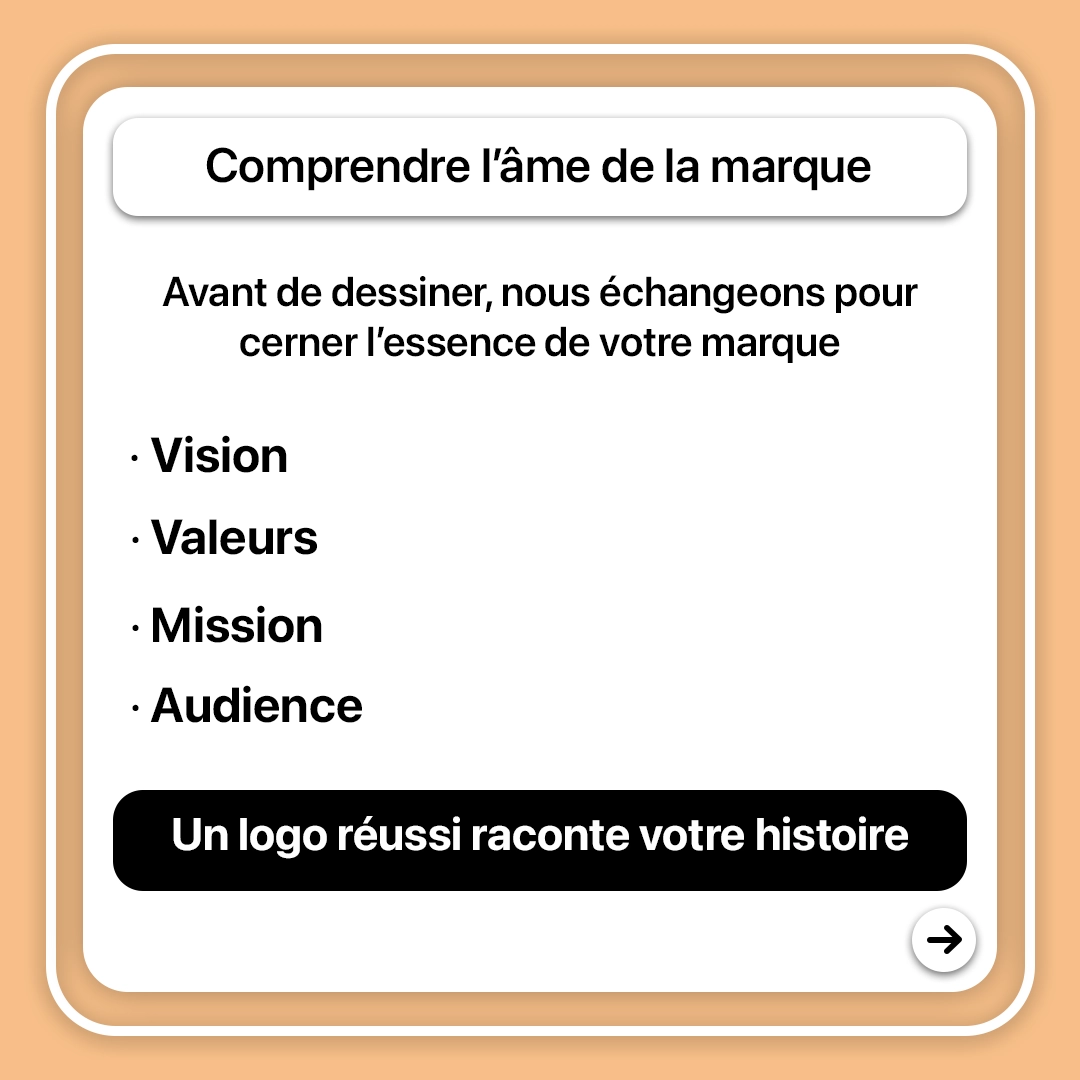 Avant même de dessiner, nous échangeons avec nos clients pour comprendre leur vision, leurs valeurs, leur mission et leur audience. Un bon logo doit raconter une histoire.